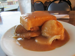 On the recommendation of the waitress, I ordered up their staple hot beef sandwich. It arrived a few moments later, a tower of tender, slow cooked beef piled between two extra thick slices of white bread. The whole creation smothered in savory brown gravy, this was a fork only event (no knife needed).