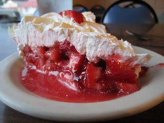 Between the Texas plates and curious picture taking, the owner made a special trip out of the kitchen to say hello and chat for a few minutes. Despite normally eschewing dessert, during our short conversation she did a remarkable job of selling me on a slice of their home made pies. Made daily, completely from scratch, the Coffee Cup has garnered national recognition for some of their pies. With strawberries in season, and a fresh batch acquired from a few miles away, I opted for the strawberry pie. Remarkably fresh and simple, the flaky crust gave way effortlessly and the pie soon disappeared.