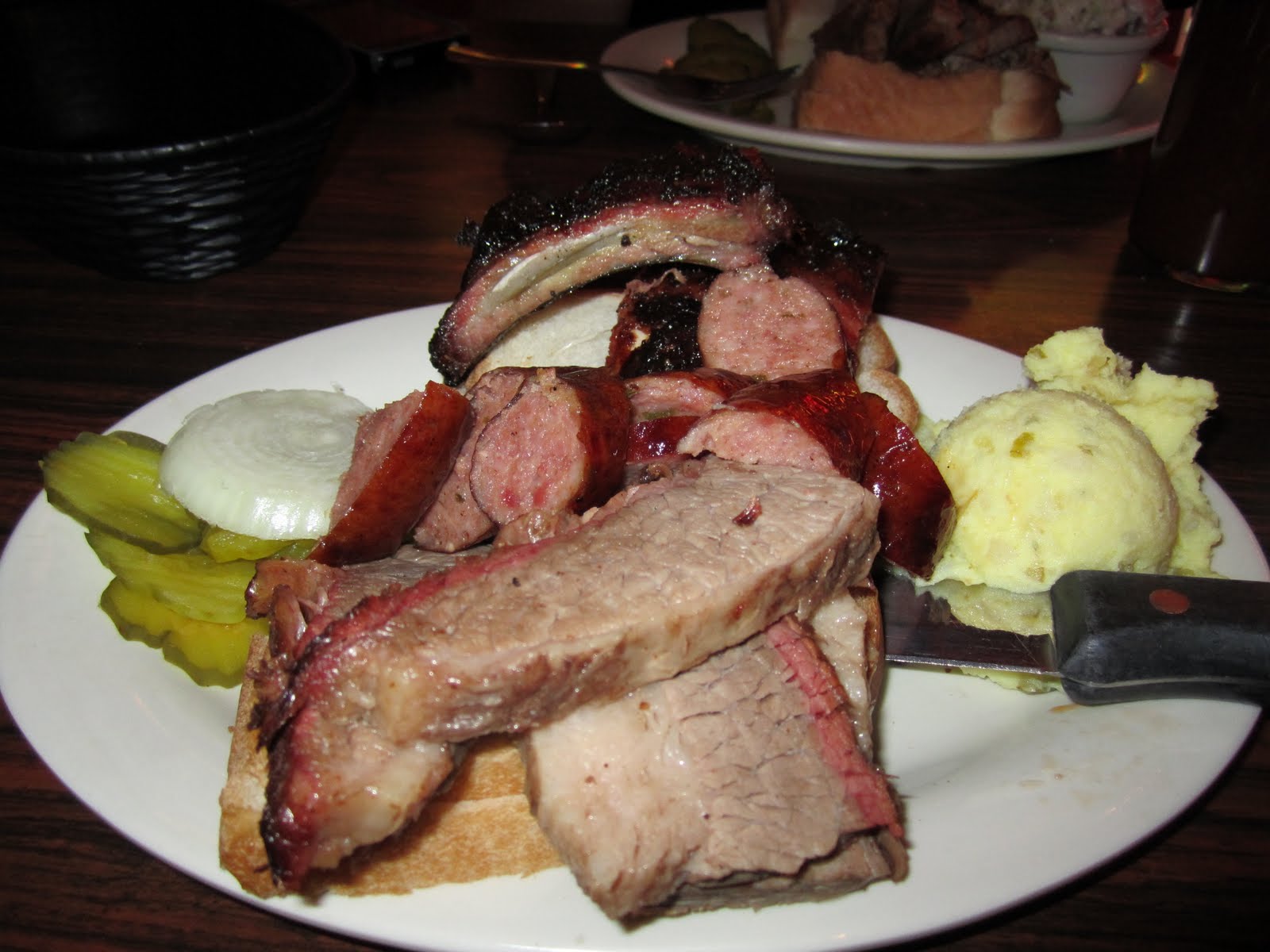 Like any Texas Barbecue joint worth its chimney, Country Tavern is not without a bit of controversy over the last few years. Having been in business since 1939, Country Tavern has earned its reputation among the best in the state by churning out high quality cue’ for eons. However, a few years ago, they abandoned 70 year old location in favor of a squeaky new building. The stodgy faithful of Country Tavern have been quick to assert that the new location doesn’t quite turn out the same quality meat as the old location. Unfazed, we decided to give it a shot anyway and we strolled into the shadowy interior of Country Tavern and settled into a plush booth.