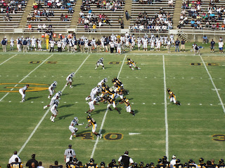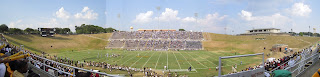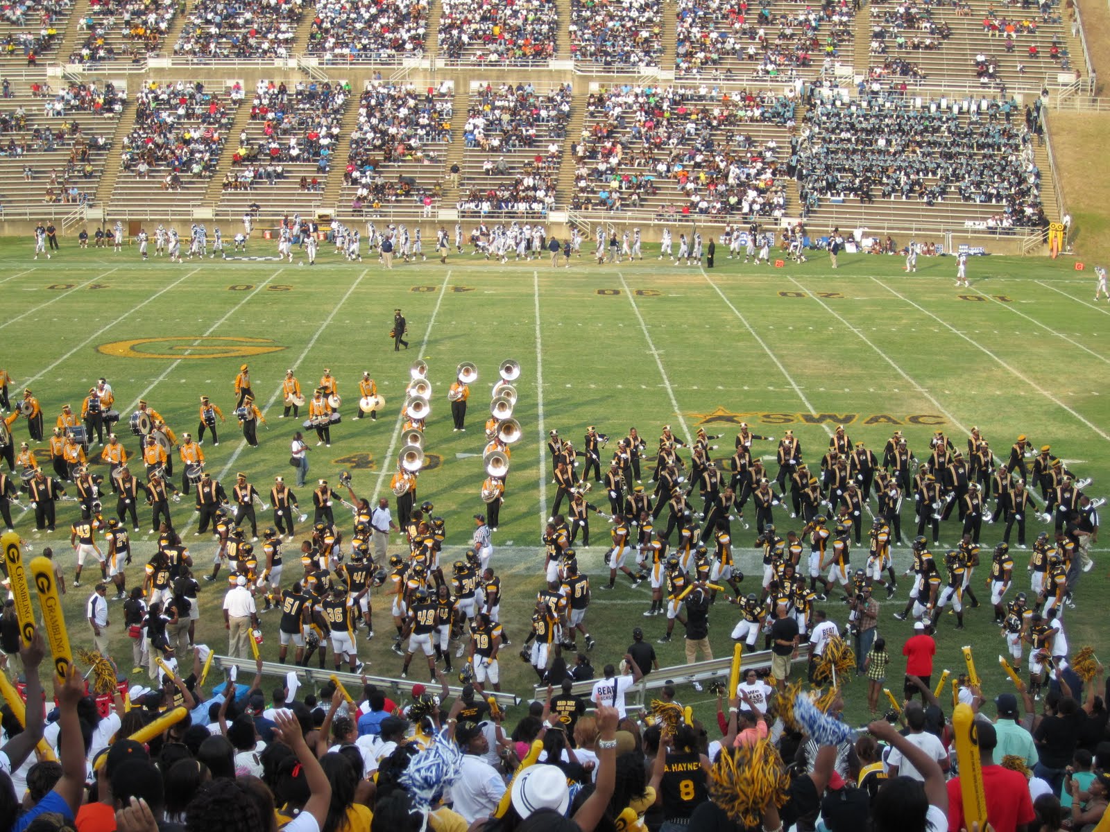 Eddie Robinson stadium, aptly named for the legendary head coach, is an interesting venue. It’s not entirely a “stadium” per se, but more of a giant hole excavated into the ground filled with bleachers on opposing sides. It’s actually quite unobtrusive on the Grambling campus and difficult to spot until you know where you are going. While certainly not an enormous venue (stated capacity of only 25,600) it certainly puts you right on top of the action, and is surprisingly the largest stadium capacity in Division 1-AA football. Though on this particular day, only 7,057 packed the stadium for the home opener.