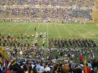 The Tiger Marching Band of course, was the true spectacle that we awaited at halftime, and they certainly did not disappoint. It’s truly in a category of its own when it comes to University bands that we have seen. While I was certainly impressed with the traditional drill of the Texas A&M Marching band (http://www.pigskinpursuit.com/2009/12/and-now-formed-at-north-end-of-kyle.html), the Grambling State band simply transcends any traditional band routine that we may be familiar with. While the performance starts out rather traditional (and impressive in its own right) it slowly builds into the unique blended art form that it eventually becomes at its apex. The Tiger Marching Band elevates the conventional halftime performance into a unique blend of symphony, theater, dance and art.