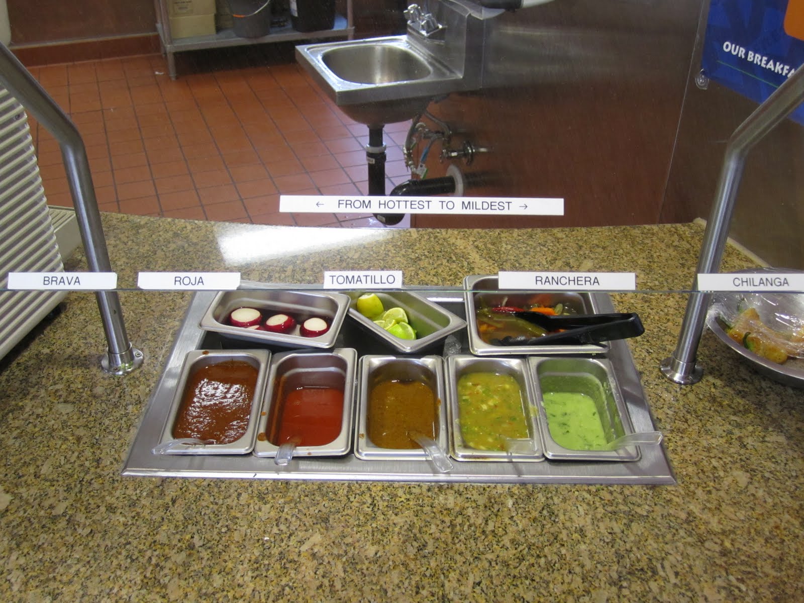 After giddily ordering up my burrito from the menu, I raided the salsa bar during an agonizing two minute wait. Fortunately for readers, my resolve for picture taking slightly overwhelmed my rumbling stomach and I had a few fleeting moments to snap a couple of photos before digging in like a rabid hyena. The final product is hefty enough to give your rolled up Sunday newspaper a run for its money, and it doesn’t take a food critic to point out the enduring combination of steak, cheese and potatoes wrapped into a tortilla. Every bite is a gooey, meaty delight offset with the crispy saltiness of fresh cooked french fries. Add in a few generous dollops of the various salsas for some heat, and my one pound California Burrito was quickly devoured.