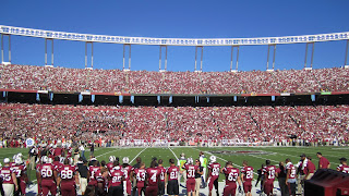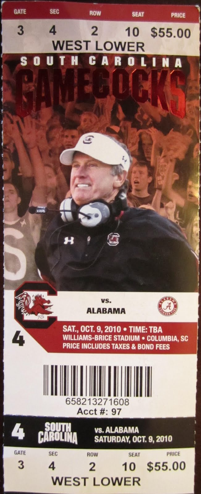 As for the game itself, unless you spent last weekend under a rock, you already know that I witnessed one of the most spectacular upsets all season, and certainly the biggest victory in Gamecock history. I guess I know how to pick em’. To put it in perspective, South Carolina had never upset a #1 ranked team, and had only beaten a top five team twice before in history. Alabama had looked nearly invincible for the last two years, yet the Gamecocks absolutely dominated them on both sides of the ball, strutting away with a convincing 35-21 victory.