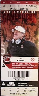 I had to cancel my Notre Dame trip originally planned for last weekend because flight costs had risen egregiously high, and I couldn’t justify the spend for a trip to South Bend. As luck would have it, a work trip brought me to Charlotte, North Carolina on Friday and I ended up falling into an offer for tickets to the South Carolina vs. Alabama game. Sometimes it’s better to be lucky than good, especially when your tickets end up being in the second row on the 40 yard line (not so subtle brag). Needless to say, watching the #18 Gamecocks hosting the #1 Crimson Tide was an opportunity not to be missed, and I gladly made the quick ninety mile jaunt down to Columbia on Saturday morning.