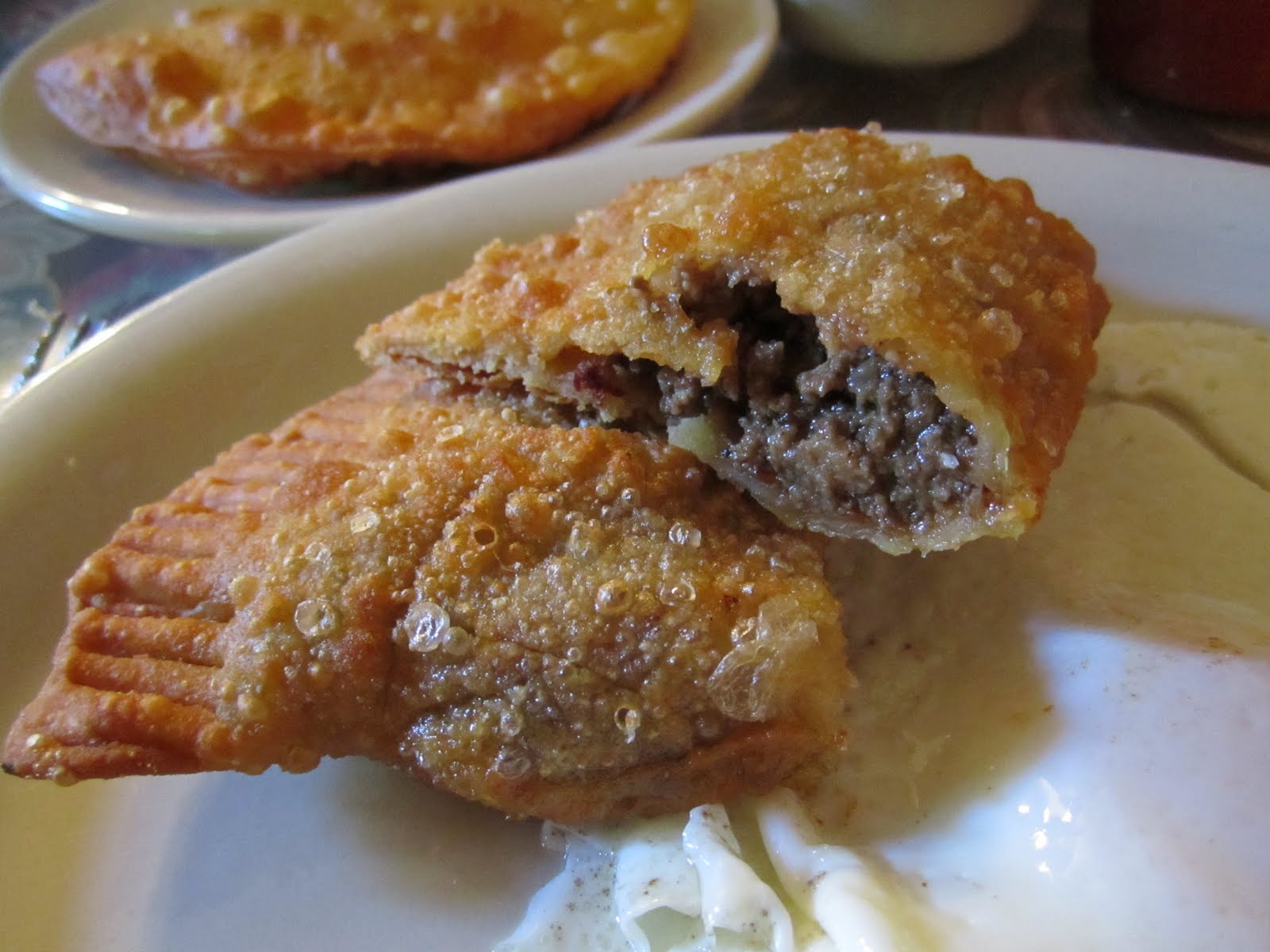 The pies are most aptly described as a fried empanada. However, unlike empanadas which can tend to get a bit dry, the Lasyone’s meat pie is moist throughout and needs no condiment to ease it down. They have a wonderful crispy crust that flakes away to a moist spiced ground meat center with just the right ratio of crust to filling to make them satisfying but not heavy. There is nothing complex or extravagant about the meatpies at Lasyone’s, they’re just good, simple food.