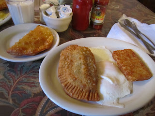 We arrived for a mid morning breakfast and settled into a table without any crowds. I took an obligatory glance over the menu, despite the fact that I had already fawned over it online for the last two weeks. When the waitress ambled over I promptly ordered up a meat pie breakfast with a side of – you guessed it- more meat pie. In fact some of us (Kate) were even wise enough to skip the breakfast part entirely and order meat pies exclusively. Consistent with all great places simplicity prevails at Lasyone’s as there is only one choice of meat pie on the menu which the waitress informed us was a combination of spiced beef and pork.