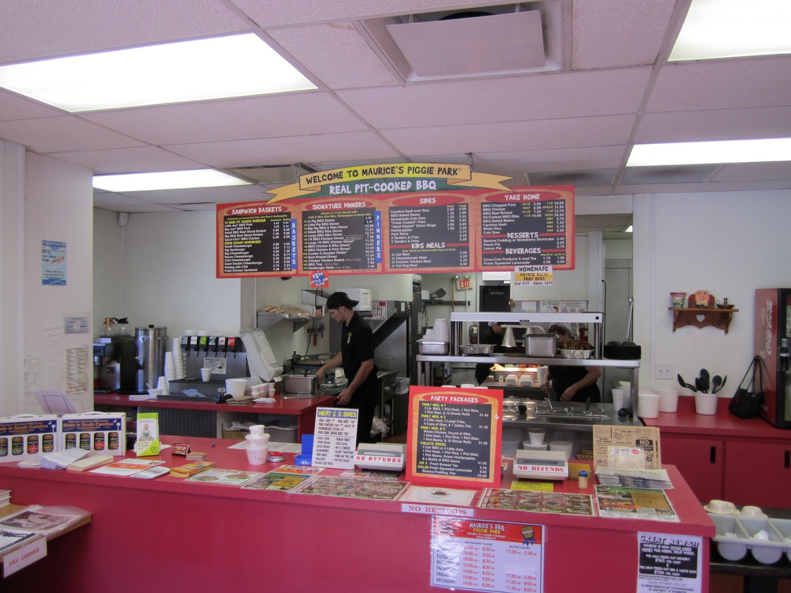 1. I don’t know where they get the term “Real Pit” from. There isn’t anything remotely close to a pit on the premises, unless you count microwaves, heat lamps and warming trays. A “real pit” would, by necessity, require an actual chimney. You won’t find anything but a decorative one at Maurice’s, located on the other side of the building from the kitchen.